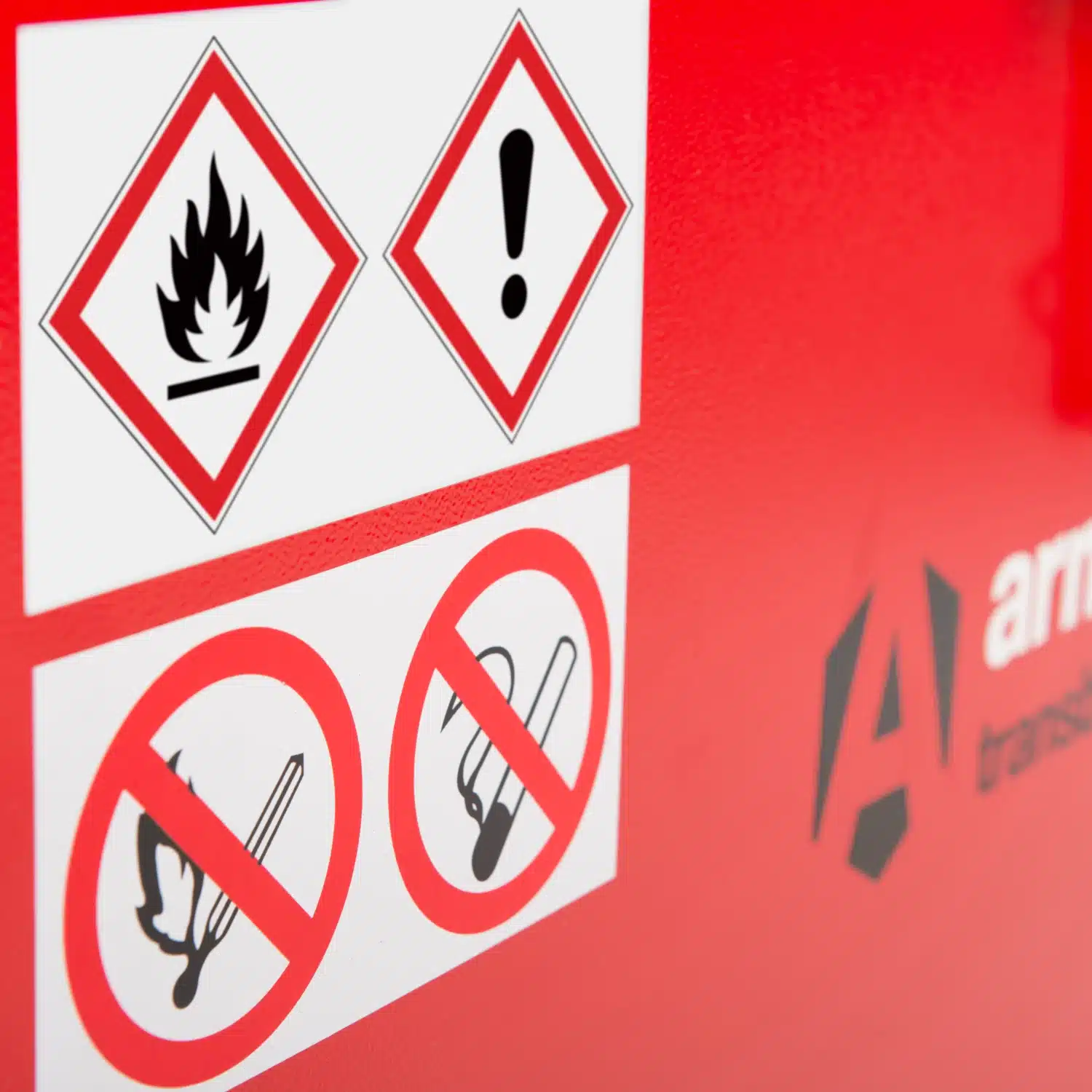At COSHH Store, we understand that legal compliance isn’t just a “nice to have”—it’s a requirement. The TransBank is purpose-built to meet COSHH regulations, Health and Safety Executive’s HSG51, and DSEAR standards. To ensure your team stays informed and safe, every unit is finished in a high-visibility bright red powder coating and comes pre-fitted with the relevant GHS hazard warning labels.